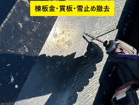 既存の雪止め金具も取り外し、屋根をフラットな状態に整えます。
