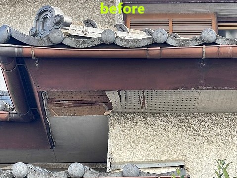 幸い屋根本体や構造部に大きな問題はなく、軒天の張り替え工事で安全に改善できる状態でした。