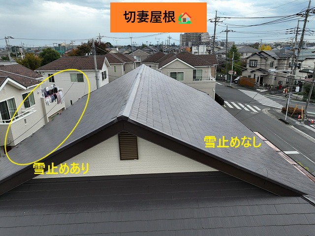 屋根は切妻屋根で、よく見ると片面にはすでに雪止め金具が付いていました。