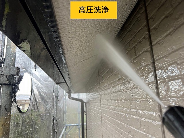 外壁に付いた汚れやコケ、古い塗膜をしっかり洗い流します。