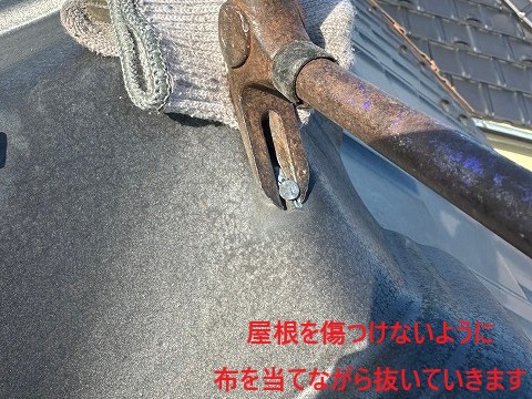 瓦を傷つけないように布を当てながら、慎重に作業を進めました。