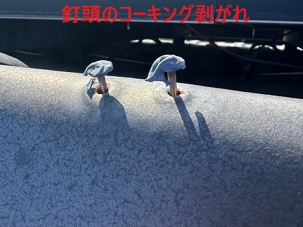 さらに、釘頭のコーキングが取れている状態では、そこから雨水が侵入し、釘の劣化を早めてしまいます。