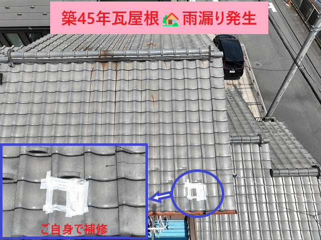 雨漏りが発生したため、お問い合わせをいただきました。築45年の瓦屋根ということもあり、一度しっかり点検をしてほしいとのご相談でした。