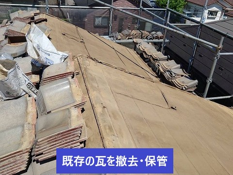 まずは既存の瓦を一枚一枚丁寧に取り外していきます。