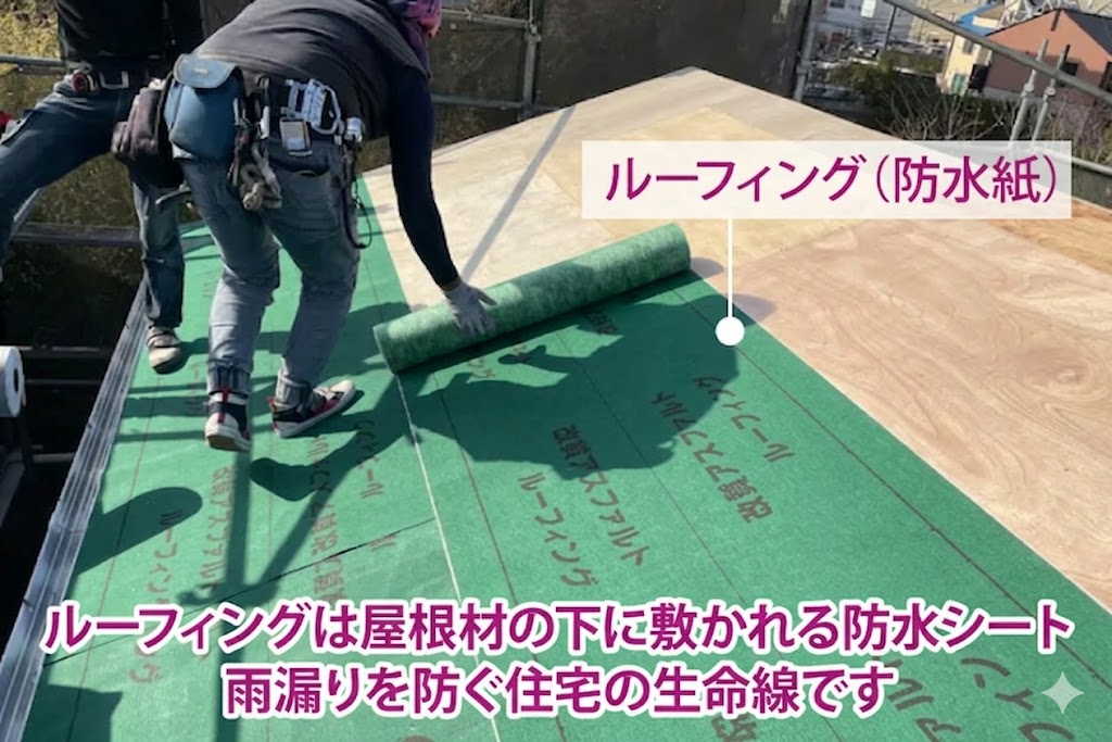 防水紙(ルーフィング)は、雨水の侵入を防ぐ“最後の砦”のような存在。