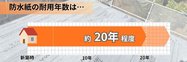 この防水紙は、一般的に20〜30年ほどで劣化してしまいます。