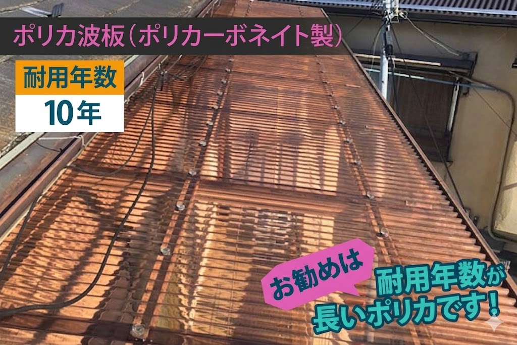 従来の塩ビ製の波板に比べて長持ちしやすく、安心してお使いいただける素材です。
