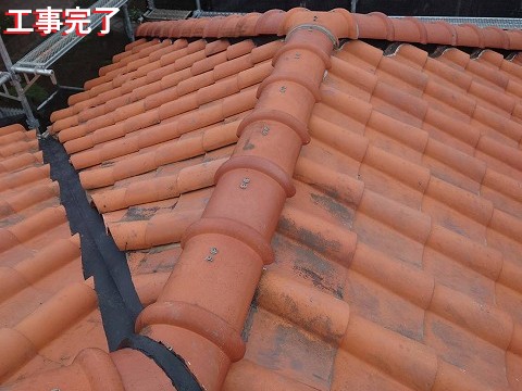 工事完了後は、瓦の並びも整い、見た目にも美しい屋根へと仕上がりました。