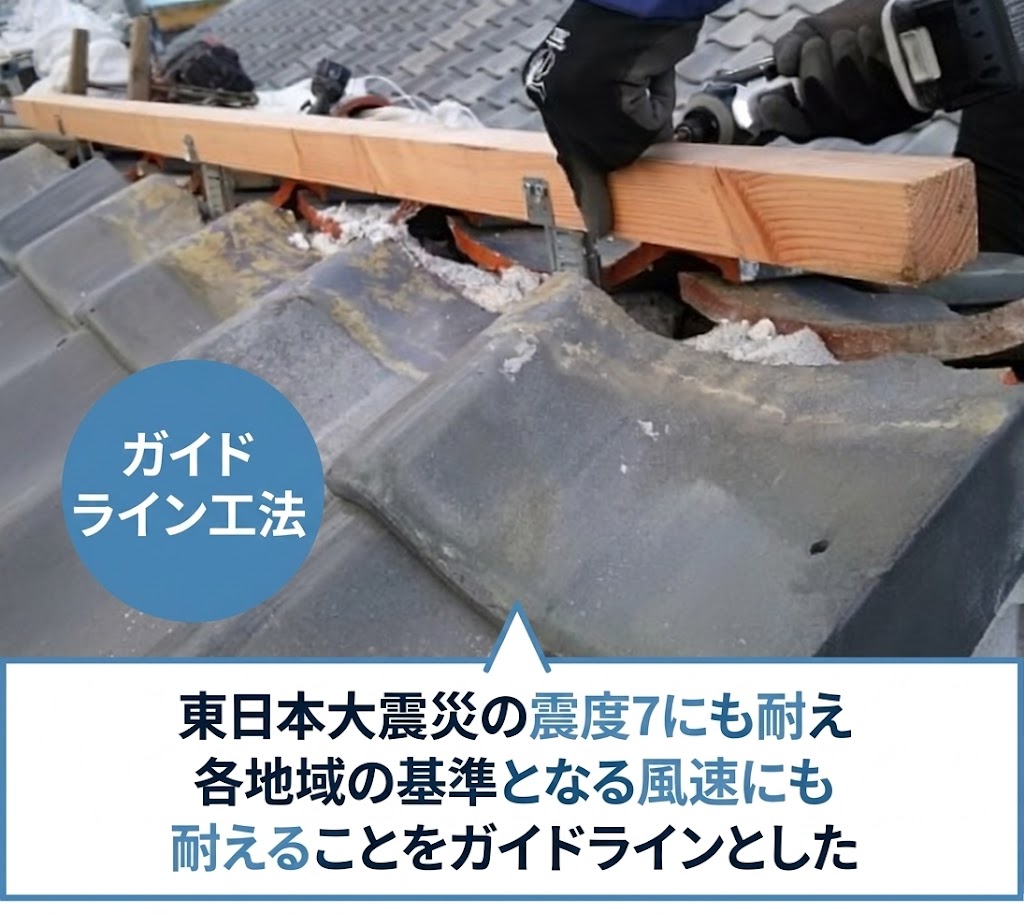 ・棟瓦はガイドライン工法で耐震・耐風性アップ